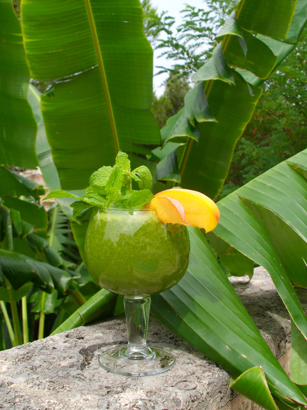 Ein leckeres Getränk aus grünem Blattgemüse (Blätter vom Gemüse), Salat, oder auch von Kräutern, Wildpflanzen (z.B. Brennessel und Giersch) Obst und Wasser im Standmixer mit Glasaufsatz püriert. Möglichst Mixer mit 1000 Watt, mindestens jedoch mit 700 Watt verwenden. Die Drehzahl des Mixers sollte etwa 10.000 U/min betragen. Top Geräte drehen sogar bis zu 38.000 U/min. Die Zutaten bitte zerkleinern und nur aus biologischen Anbau, möglichst aus der Region und der Jahreszeit entsprechend verwenden.